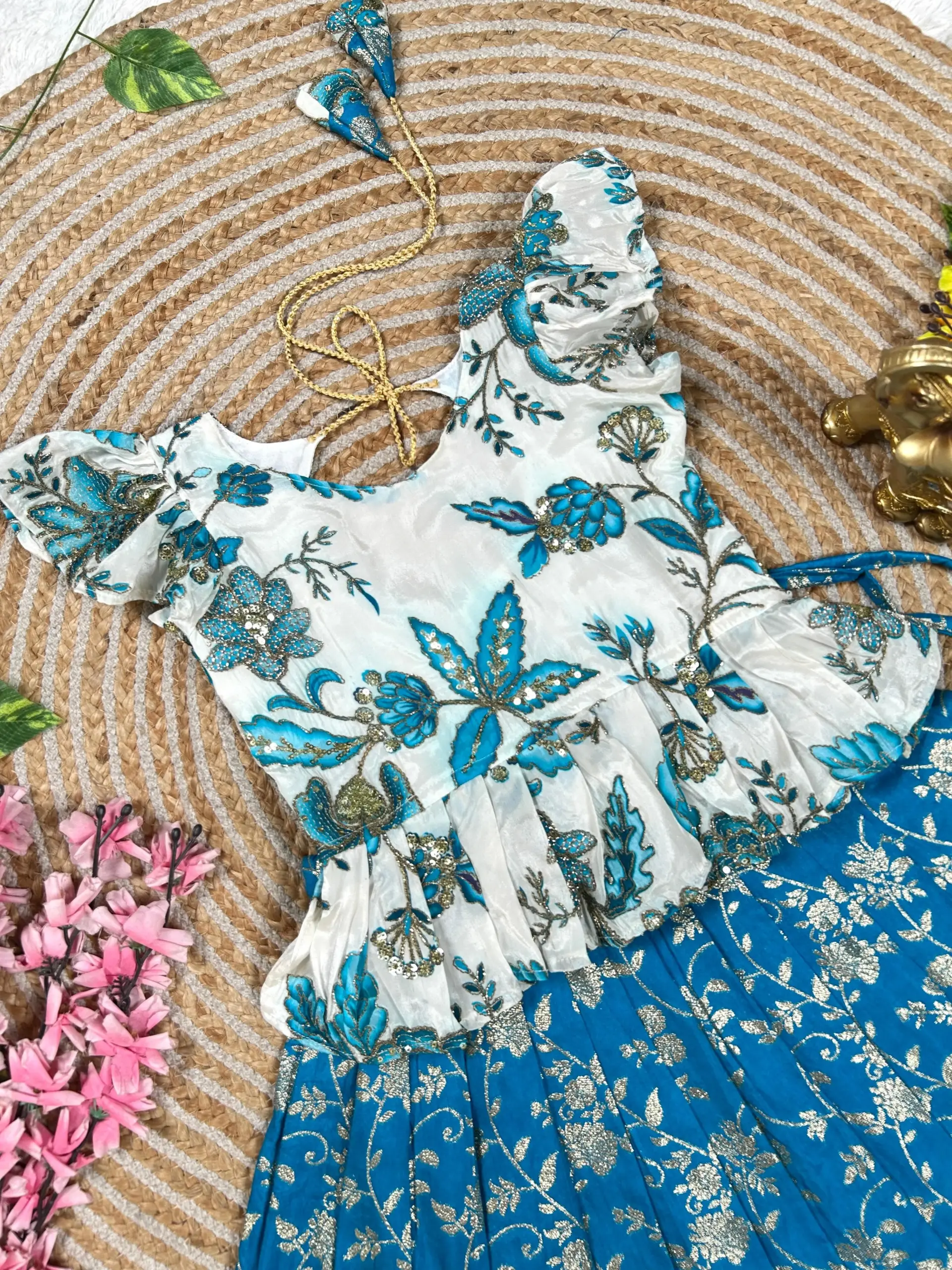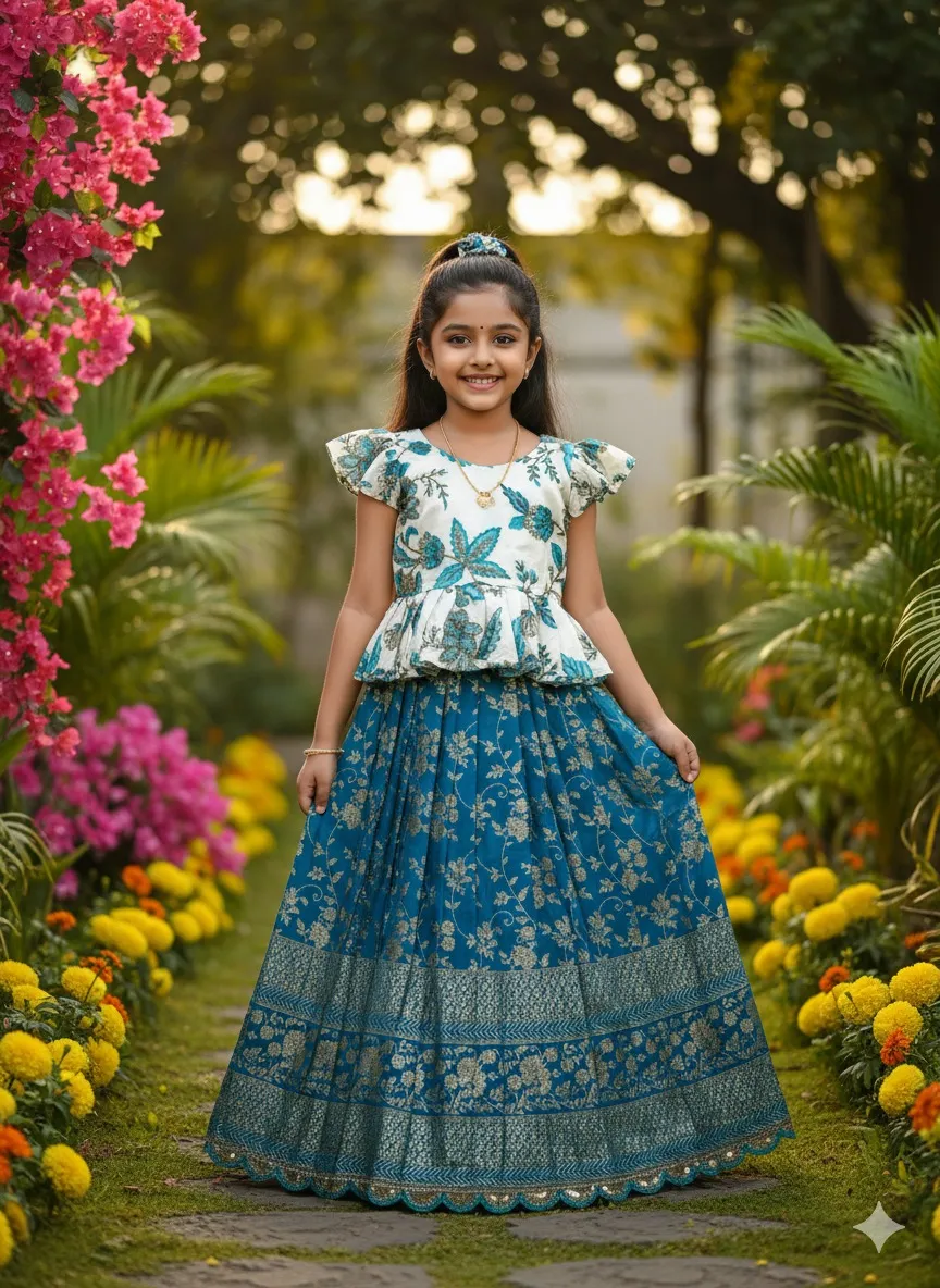 | Choli | Natural Crepe with Position Print; Closure: Zip (Left Side) |