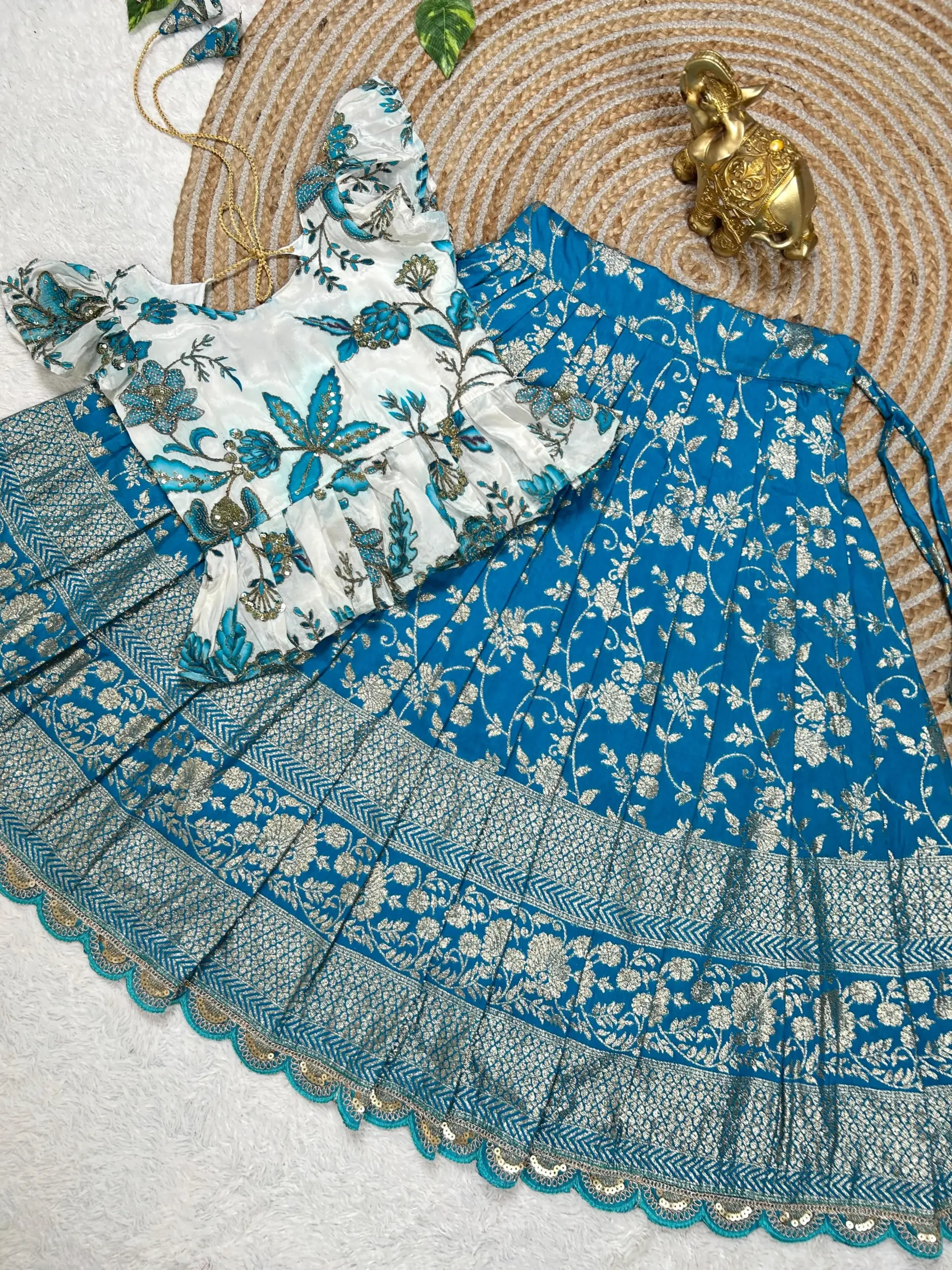 | Lehenga | Golden Zari Silk with Dyeable / Embroidery Work; Lining/Inner: Micro-Cotton; Weight: 700g |