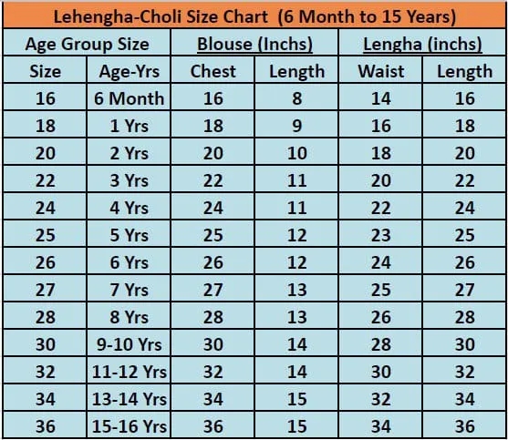 | Size | 1 Yr – 15 Yrs (Refer to Size Chart) |