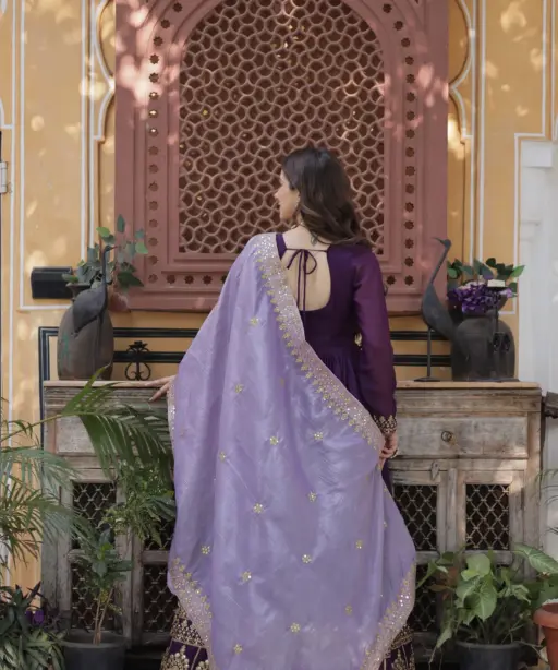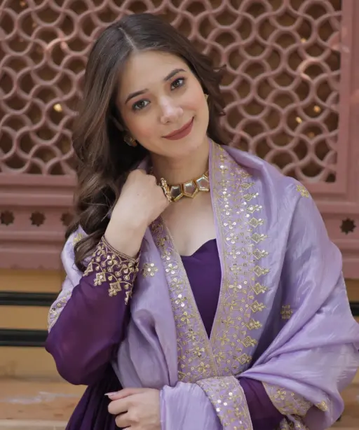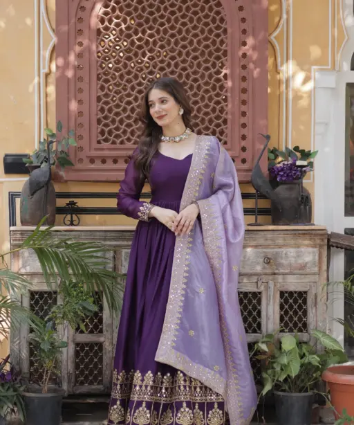 Star Georgette with Embroidery Zari Sequins Work, 56-inch length, 3.5 mtr flair, full sleeves, fancy neck, and full cotton lining (top to bottom) | |