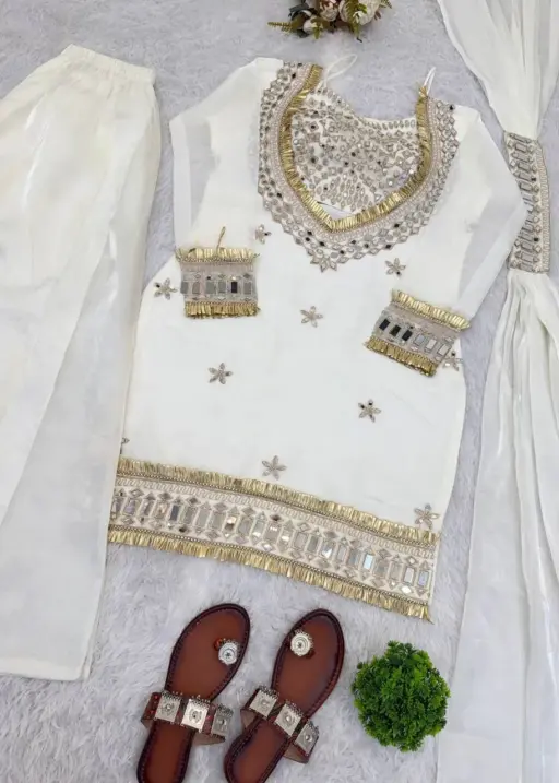 Catalog Name: White 4 Piece Blouse Suit with Salwar