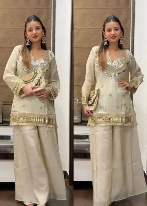 Top: Pure CRUNCHY SILK With Heavy Embroidery Sequence Work with Full Sleeve top 45-46 Length