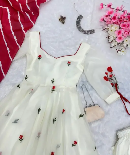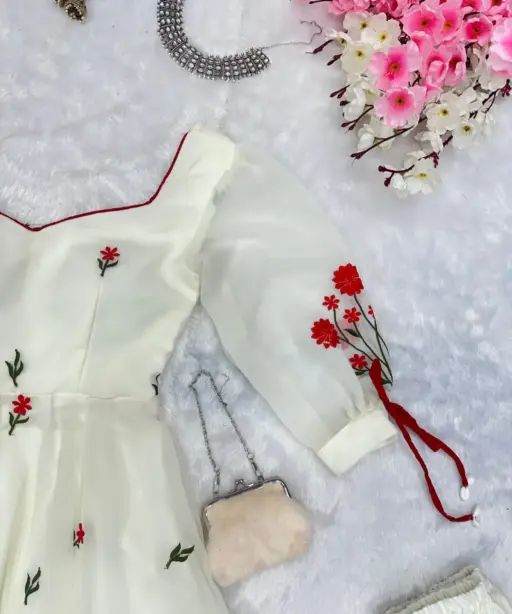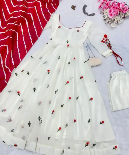 | Top | Anarkali embroidery work Butta georgette Anarkali suit with huge flair, Anarkali length 49+ |