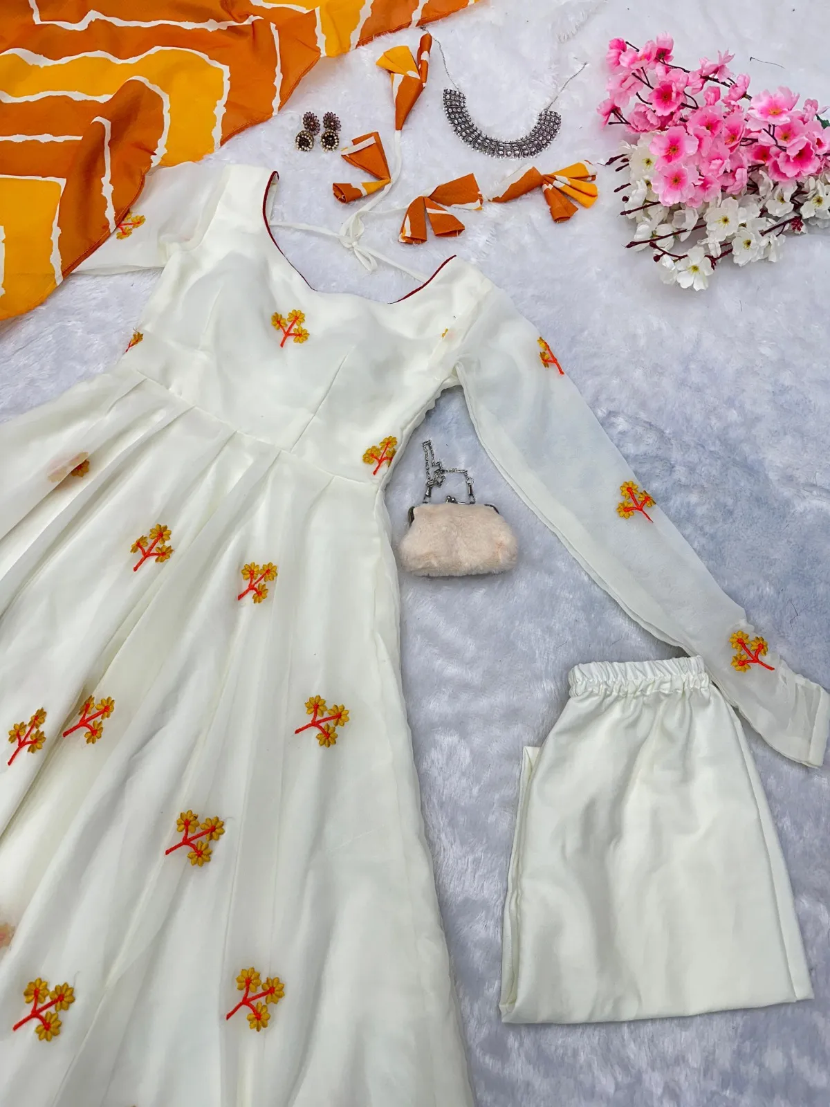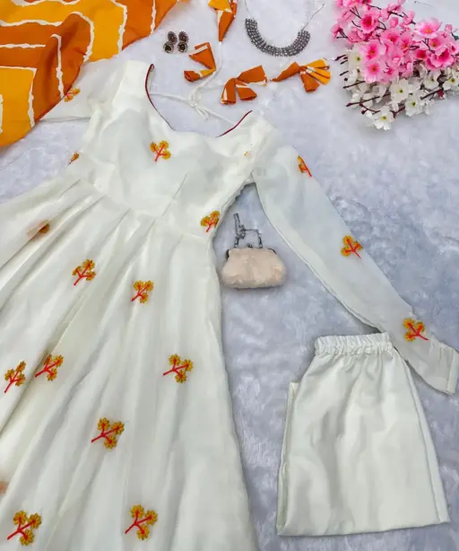| Top | Anarkali embroidery work Butta georgette Anarkali suit with huge flair, Anarkali length 49+ |