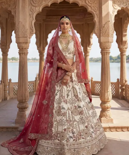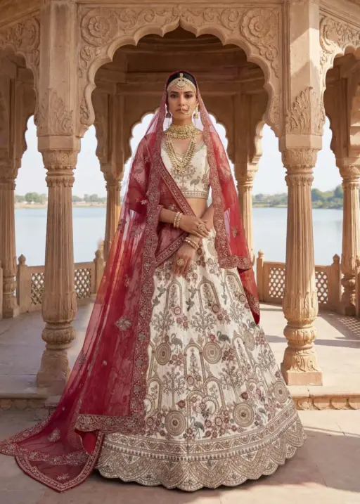 White Bridal Silk Lehenga Choli with Double Dupatta Under 20000