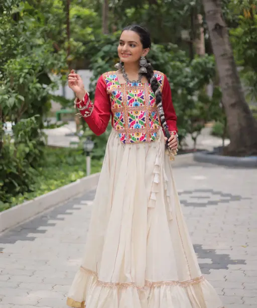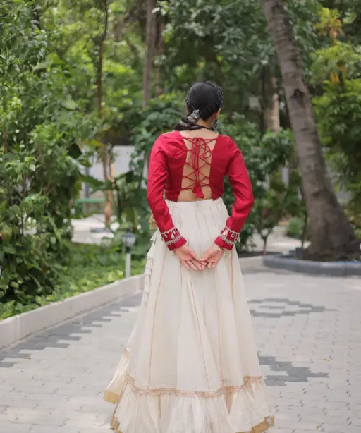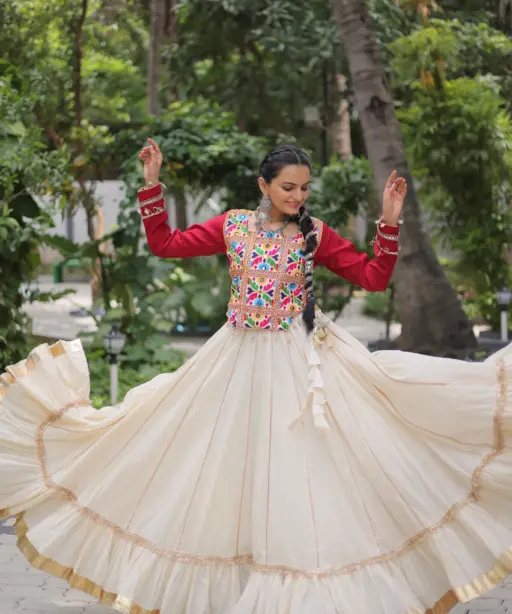| Lehenga | Kora Cotton with Attractive Gota-Patti Lace, Length 42, Waist 42 Flair 8 Mtr, 16 Kali Stitching Inner Cotton Closure Chain Attached with Dori Drawstring |