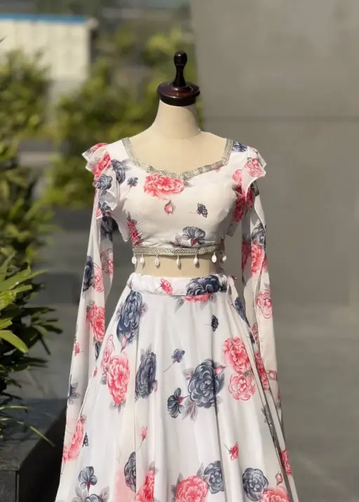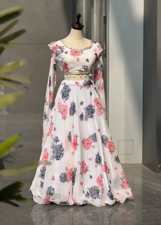 LehengaPrinted georgette lehnga with canvas patta and waist dori fully stitched