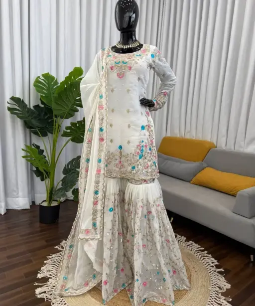 | Dupatta | jmc silk thread with Sequence with rivet moti with 4-Side work brooder Length: 2.2 meters |