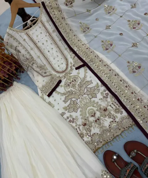 DupattaHeavy Faux Georgette with Embroidery 5 mm Sequence Work with Lace Border 2.20 Mtr