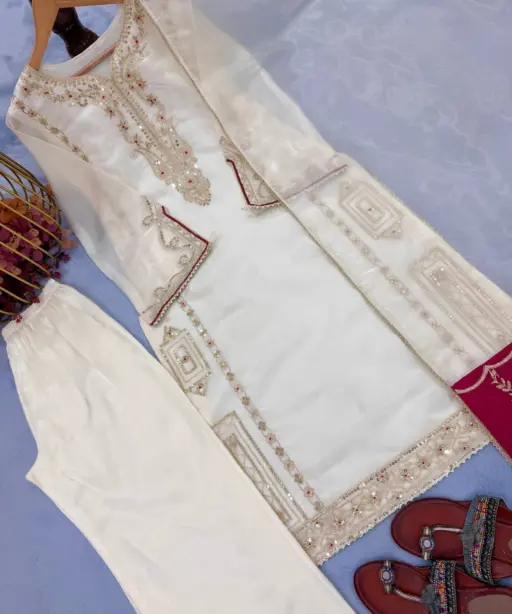 | Top | Pur jc Silk with Embroidery 5 mm Sequence Work with Fancy Sleeves 44-45 Inch Length |