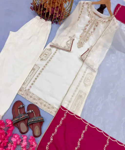 | Dupatta | Pur j Ch Silk with Embroidery 5 mm Sequence Work with Four Side Readymade Lace Border 2.20 Mtr |