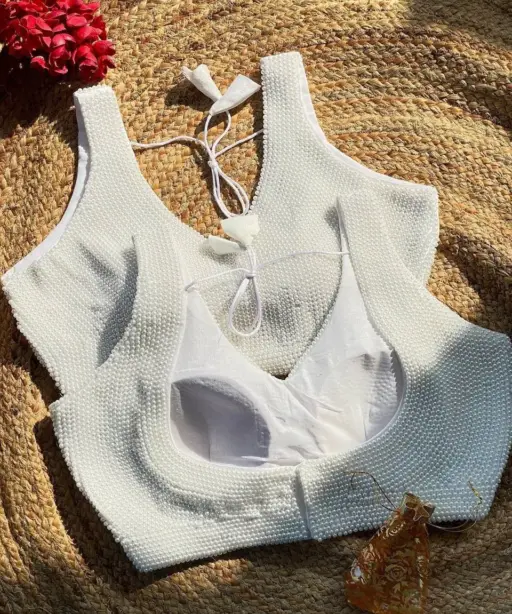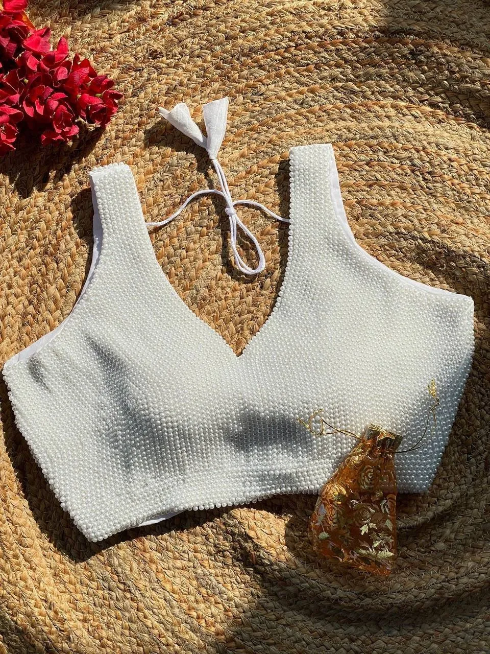 BlousePure Silk Handcrafted Pure Handwork Pearl n Moti n Back Huk Size Free Upto 40