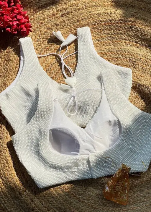 | Blouse | Pure Silk Handcrafted Pure Handwork Pearl n Moti n Back Huk Size Free Upto 40 |