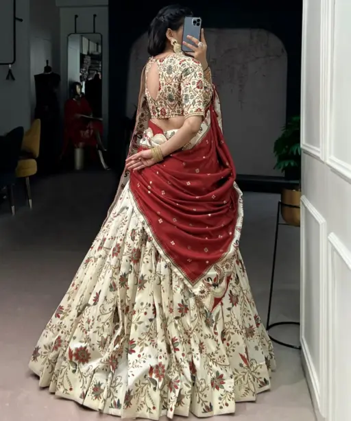 White Silk Printed Lehenga Choli