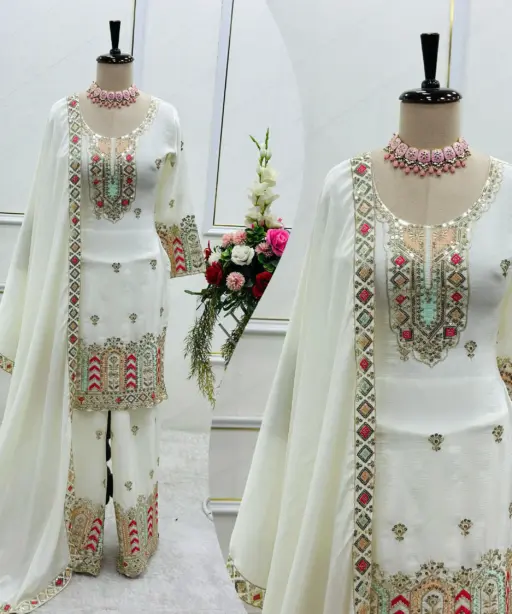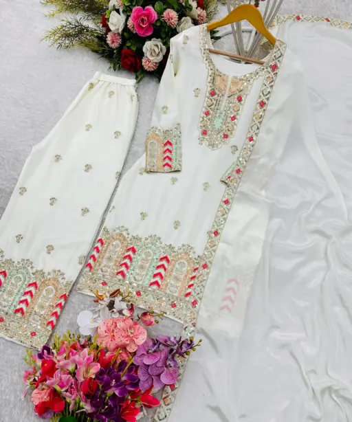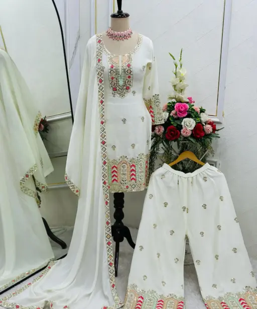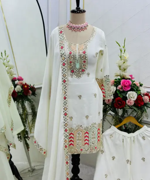 - Timeless Elegance: The white color and multi-thread embroidery make this suit a timeless addition to your wardrobe.