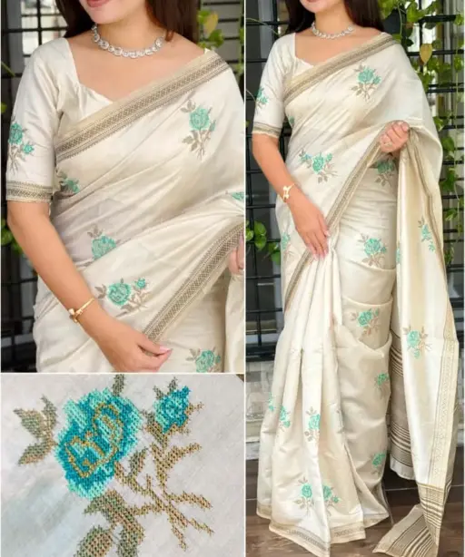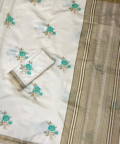 | Saree | Pure tusser silk (Multi-thread work in full saree, Zari weaving in pallu with zari jacquard border) |