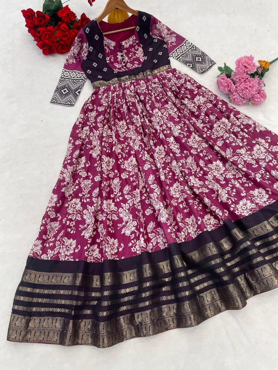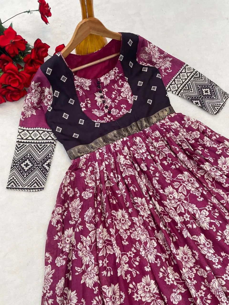 | Top | Soft Silk Traditional Kalamkari Print with Weaving Zari Border |