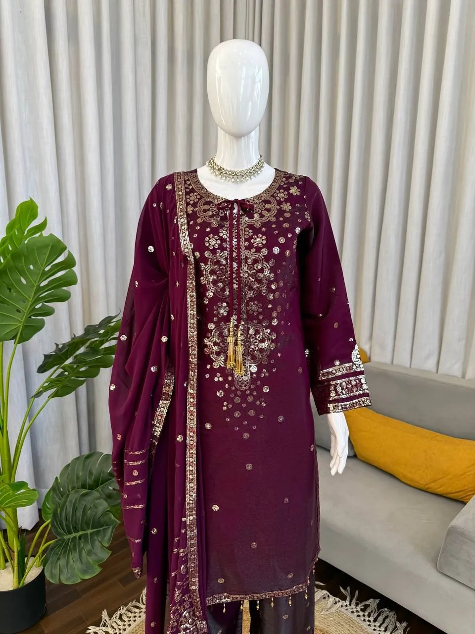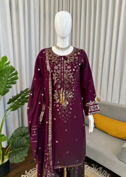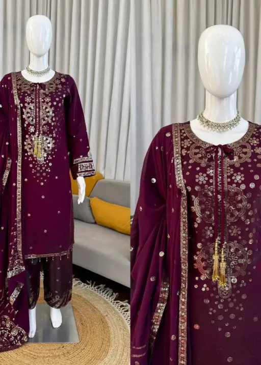 Wine Color Readymade Pant Suit