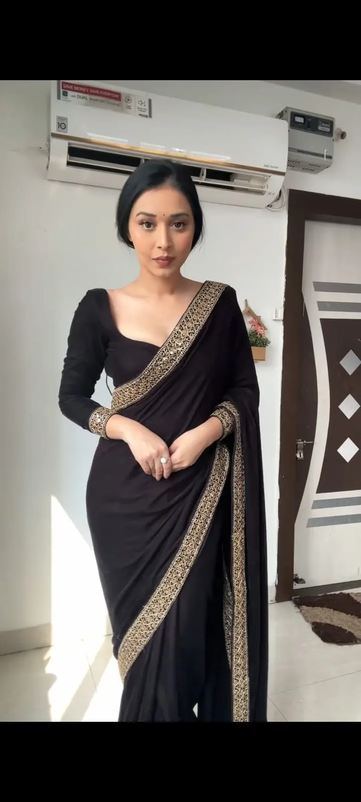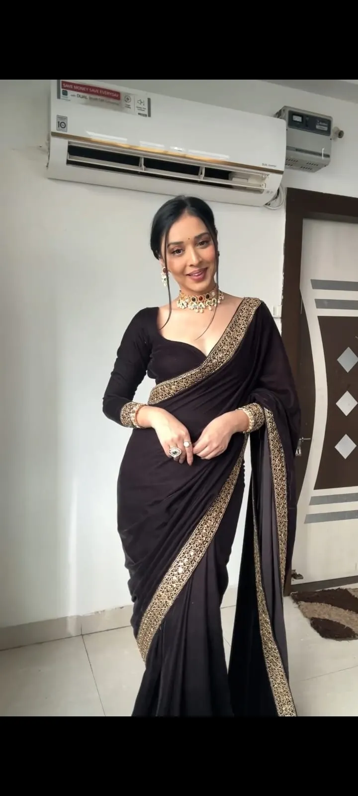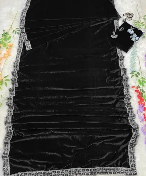 Winter Black Velvet Readymade Saree