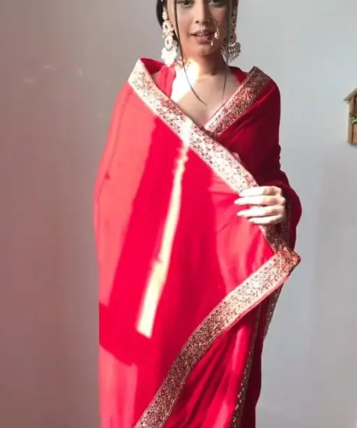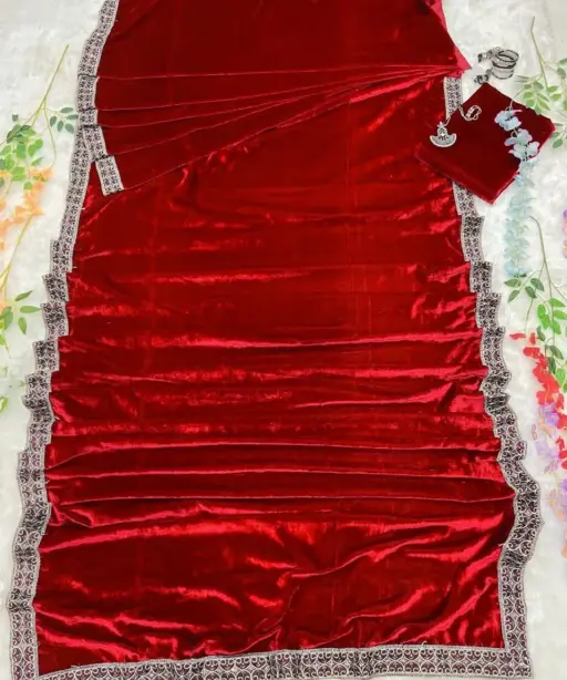Winter Red Velvet Readymade Saree