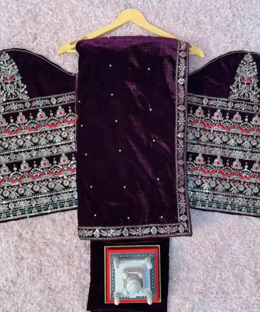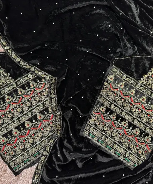 Blouse9000 Velvet with Full Embroidery Work (0.80 Mtr Unstitched, Full Sleeve Work)