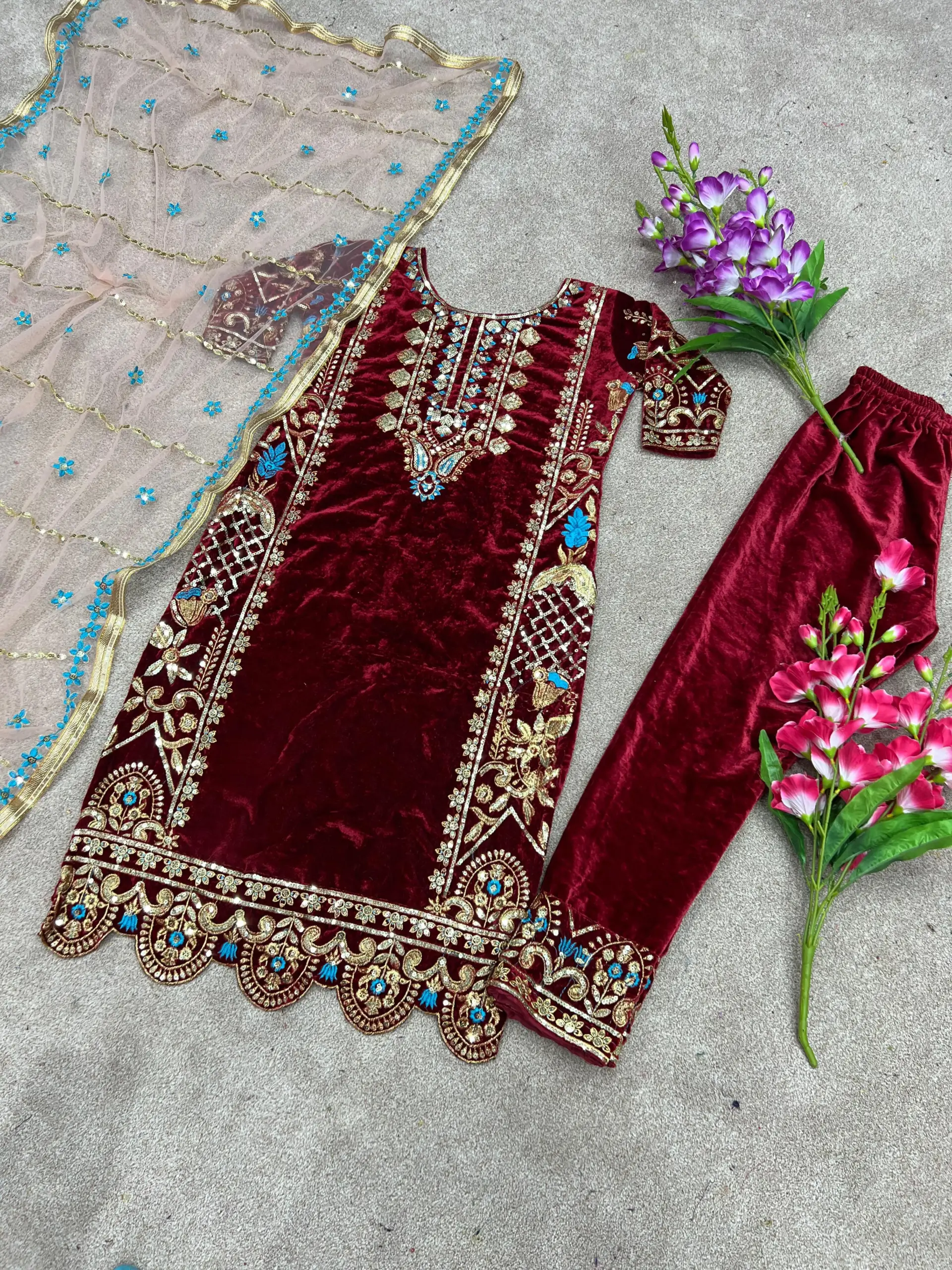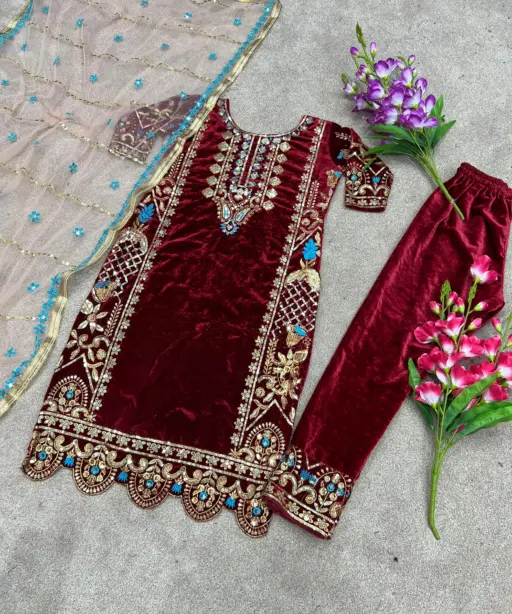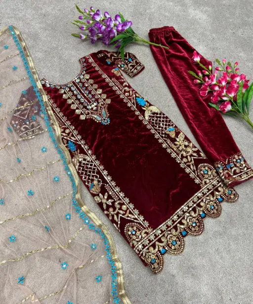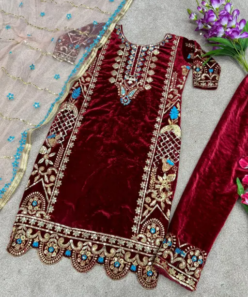 | Bottom | Viscose Velvet with Embroidery Sequence Work (Fully Stitched) |