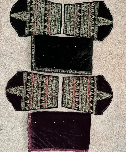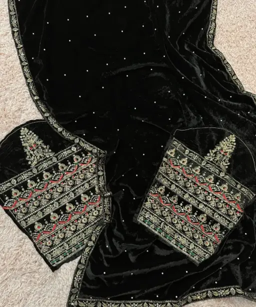 | Blouse | 9000 Velvet with Full Embroidery Work on Full Sleeve (0.80 meters, Unstitched) |