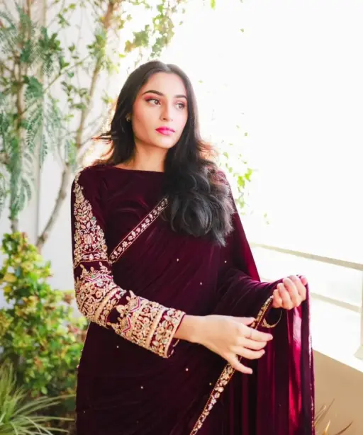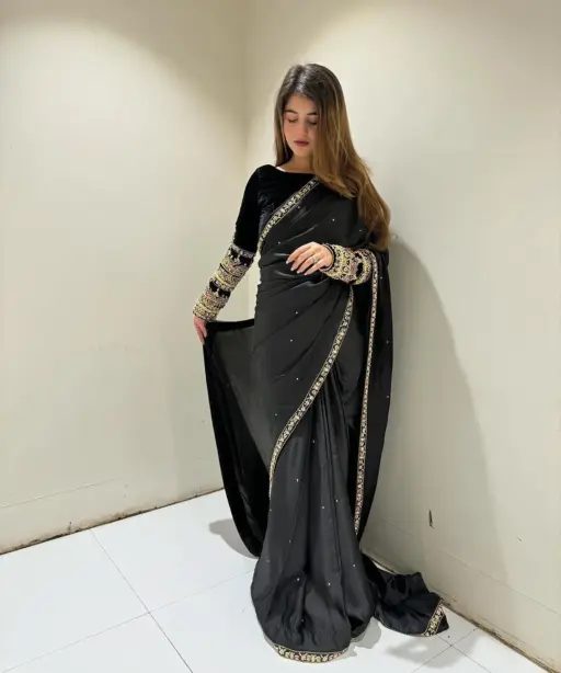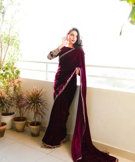 Winter Wear Velvet Saree With Heavy Emroidery And Moti Work Trending ST403