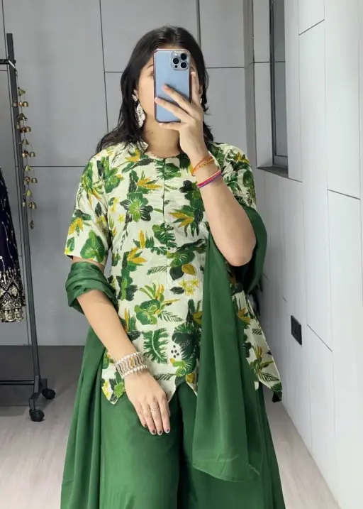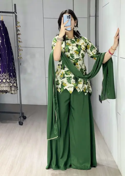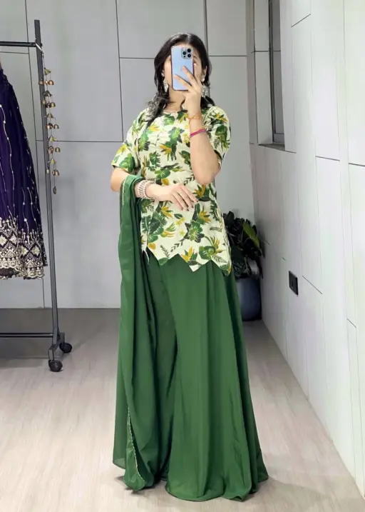 Women’s Floral Embroidery Short Top with Plazzo Dress