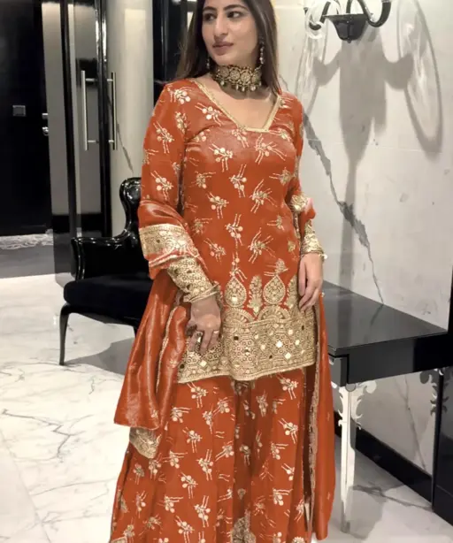 Luxurious Fabric Crafted from premium fabric, the Sharara Salwar Suit offers comfort and elegance. Soft, breathable, and lightweight, this suit is designed for all-day wear during the festive season. Whether it’s a busy day of celebrations or an evening gathering, the fabric ensures you feel at ease while looking stunning.