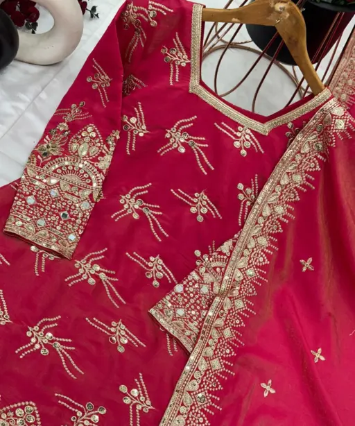 Premium Quality: From fabric to finishing, every detail has been carefully crafted to ensure a high-quality, long-lasting product. The suit’s luxurious look is enhanced by its fine stitching and rich embellishments.