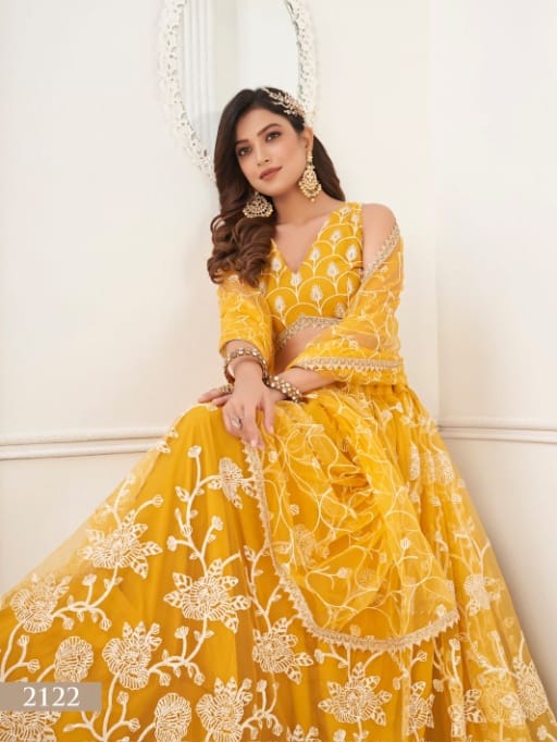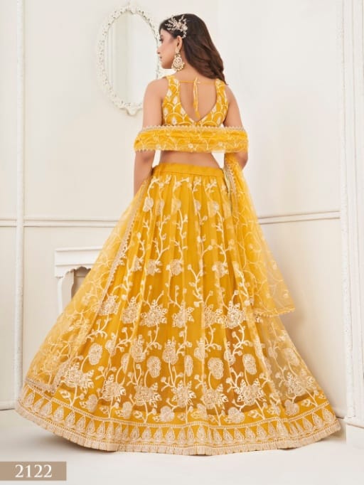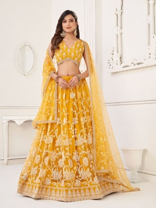 Yellow Color Bridesmaid Net Lehenga Choli for Haldi Function