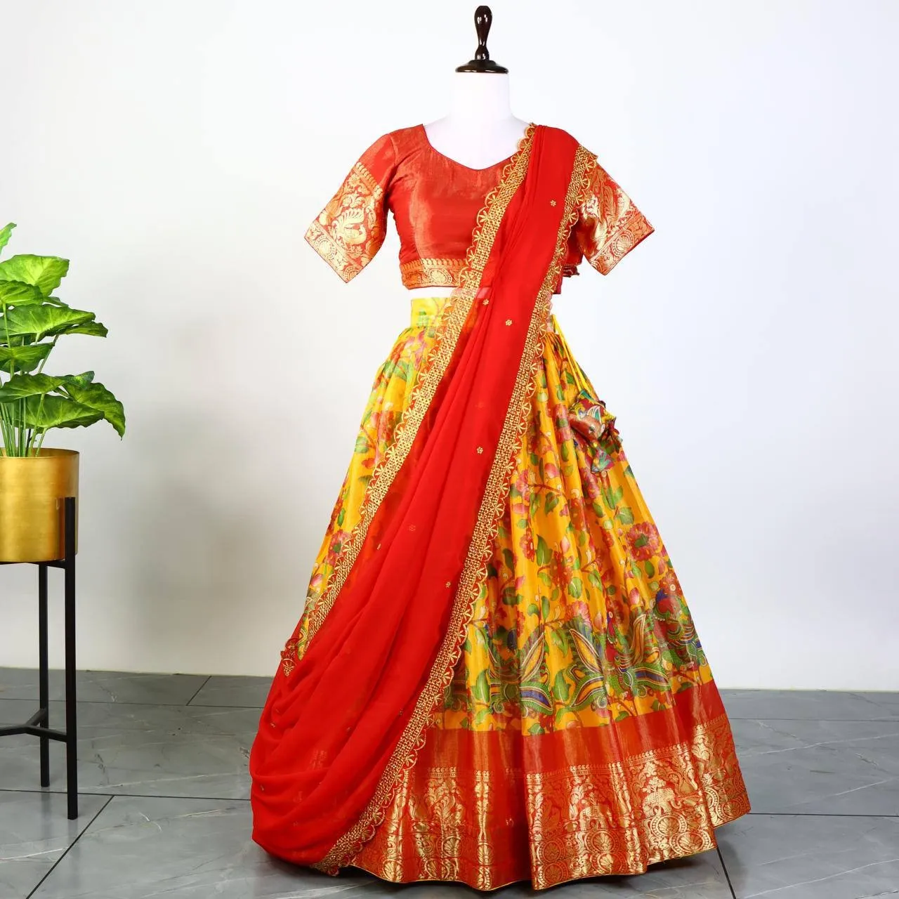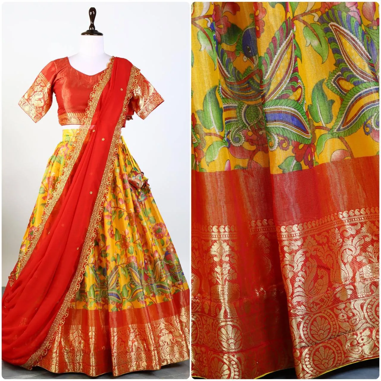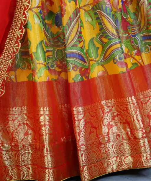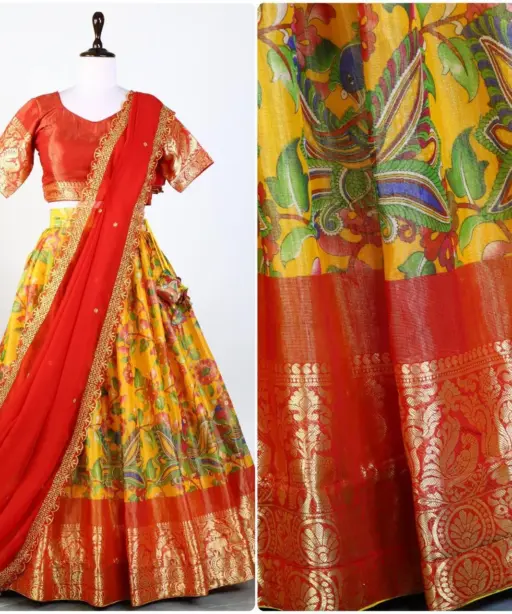 | Lehenga | Mysore Silk Kalamkari Heavy Pure Print Length: 41 Flair: 4 Meter Stitched |