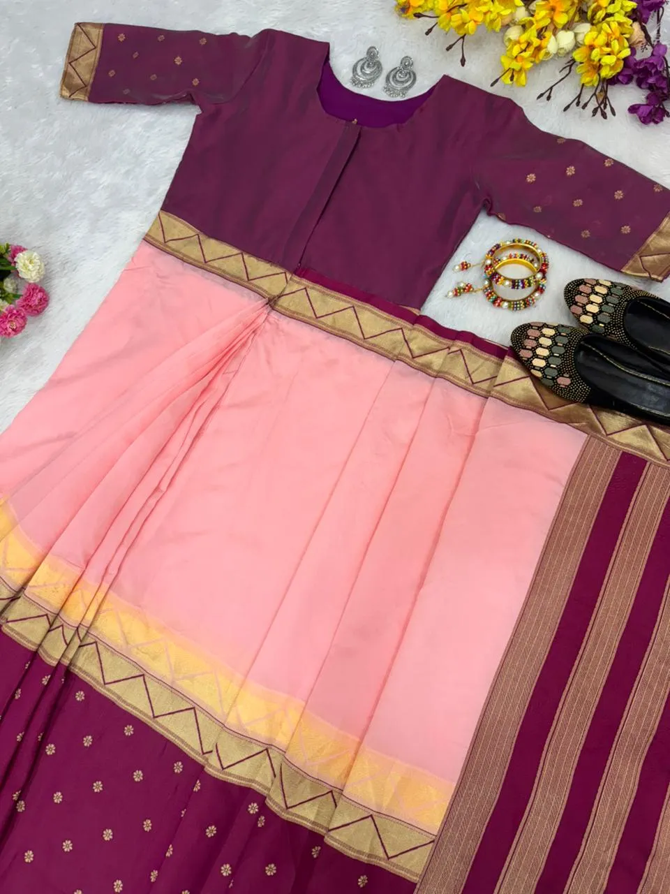 | Top | Mysore Silk Micro Cotton Inner Jacquard work 56-58Inch Length |