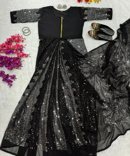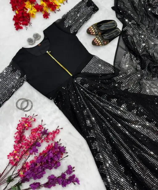 Buy Zip and Go Ready-to-Wear Gown Saree with Sequence Work – Style Meets Comfort